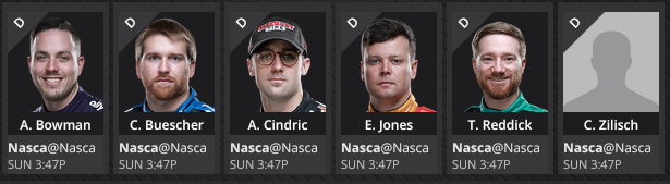 There is a big group of potential names to consider at the front of the field and I’m not sure I want to lay confidence in anyone. Connor Zilisch has shown terrific road course skills but also makes a lot of mistakes as a rookie. William Byron and Chase Elliott are all strong talents at COTA but have somewhat struggled thus far this weekend. Christopher Bell is another driver with excellent COTA stats but has not shown terrific speed thus far this weekend. Therefore instead of trying to guess drivers that could emerge as contenders on Sunday, I think our better option is to find sharp picks in the form of H2H match-ups. Alex Bowman and Chris Buescher are among my favorite H2H targets going into Sunday. Both drivers rarely show up on the speed charts and do not necessarily always qualify well at COTA. However, both drivers seem to always move forward under race conditions and I am expecting that scenario to unfold for both targets!